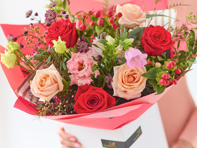 An irresistible mix of the finest, freshest romantic blooms, this bouquet is a knock out. Expect flowers in classic Valentine’s colours including cerise, burgundy and soft pink.