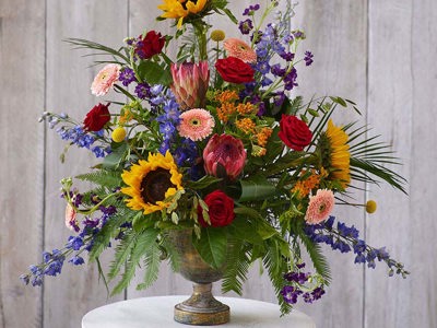 Each and every design is one-of-a-kind, created by an artisan florist using the freshest flowers available on the day so, whilst your tribute may look different to the ones pictured, it’ll still be just as beautiful.