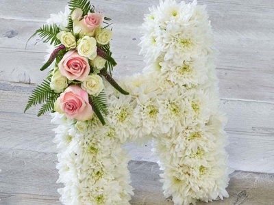 Traditional white tribute letters with a posy of flowers in a range of bespoke colours . Price is per letter, please add the number of letters you need to your cart.