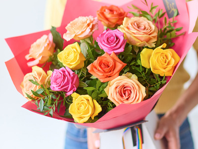 Vibrant roses in orange, pink, yellow and peach. For customers looking for something a little different this Valentine’s Day.